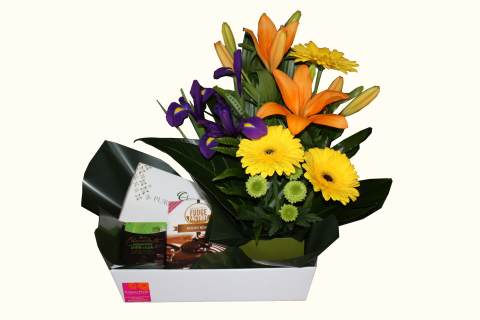 Flowers & Chocolate Hamper is a popular hamper to send to people located in Perth Hospitals, or recuperating at home. The Flowers & Chocolate Hamper includes: